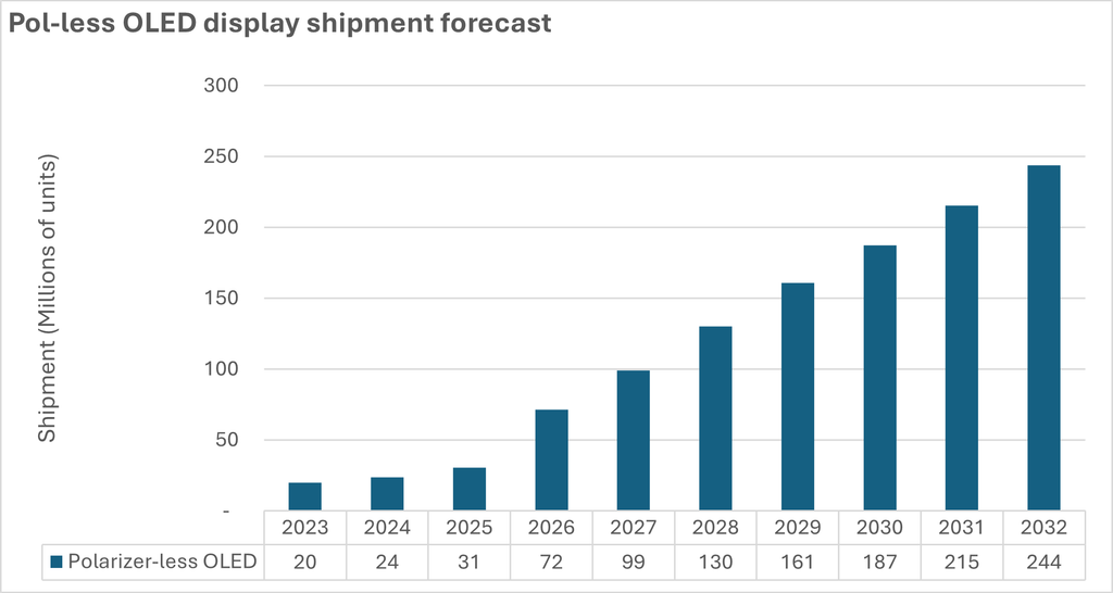 Choć technologie eliminujące polaryzatory w urządzeniach mobilinych początkowo trafiały wyłącznie do najdroższych flagowców ze względu na koszty wdrożenia, obecnie widać trend rozszerzania ich dostępności. Szacuje się, że do 2032 roku liczba dostarczanych paneli tego typu osiągnie poziom 244 milionów sztuk rocznie. Poza topowymi rozwiązaniami takimi jak COE, producenci rozwijają także uproszczone warstwy polaryzacyjne (SPL), które przy niższych kosztach produkcji mają szansę trafić do tańszych modeli smartfonów i tabletów.