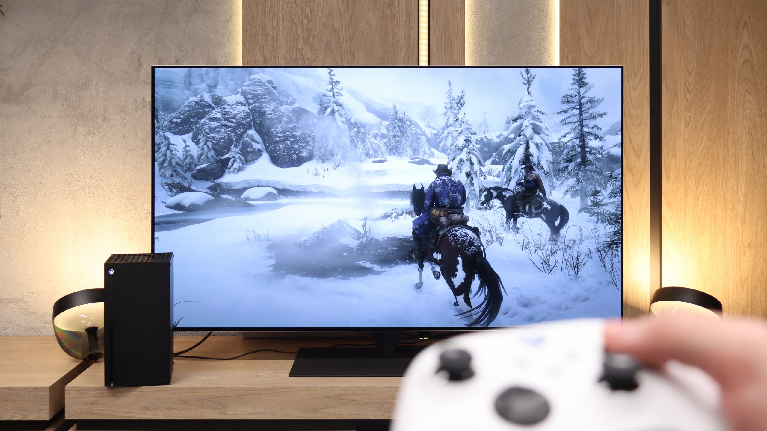 Samsung S95F to nie tylko ekran do filmów i gier, ale też świetnie rozwinięta platforma smart. System Tizen działa szybko i sprawnie – trudno tu trafić na przycięcia czy poważniejsze problemy. Na co dzień mamy wszystko, czego potrzeba: AirPlay, udostępnianie ekranu ze smartfona, wyszukiwanie głosowe (działające nawet bez pilota w dłoni). To system zamknięty, więc nie znajdziemy tu każdej aplikacji dostępnej w Androidzie, ale biblioteka jest na tyle bogata, że raczej nikt nie poczuje niedosytu. Do tego dochodzi SmartThings, czyli integracja z inteligentnym domem, dzięki czemu telewizor potrafi być czymś więcej niż tylko wyświetlaczem.